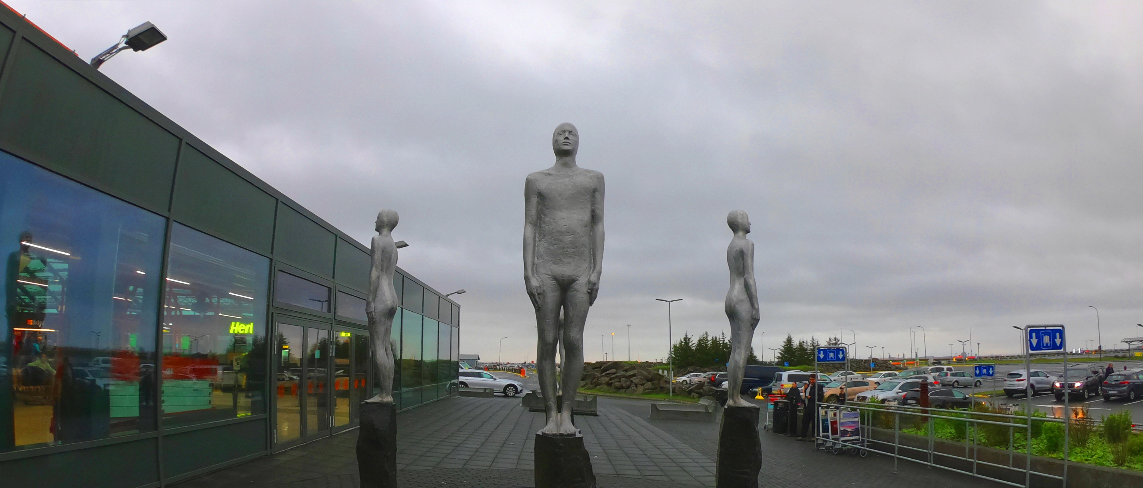 하지만 이 공항의 가장 인상적인 부분은 바로 공항의 외부입니다. 아이슬란드의 아름다운 자연을 배경으로 한 공항 외부에는 4명의 아이슬란드인이 동서남북을 지키는 수호신의 조형물이 자리잡고 있습니다. 이 조형물은 여행객들에게 여행 동안의 안전을 기원하는 의미를 담고 있습니다.