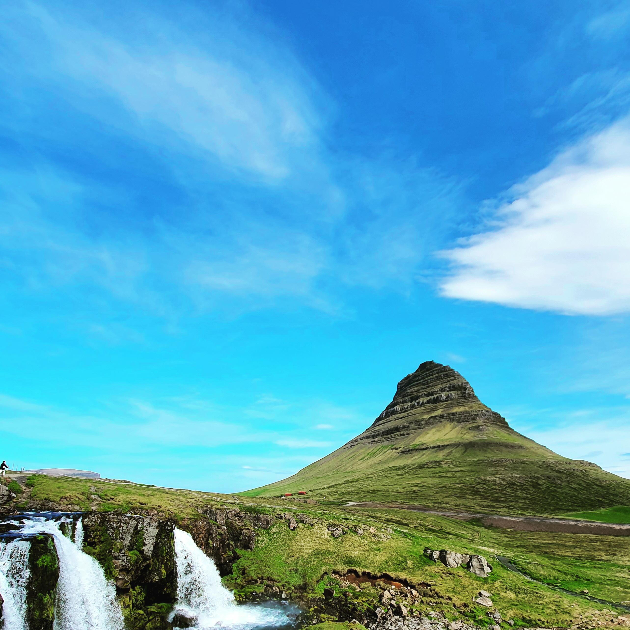 아이슬란드 여행 중 가장 인상적인 풍경을 꼽으라면 주저 없이 키르큐펠(Kirkjufell)을 추천한다. 이 산은 Grundarfjörður 마을 근처 스나이펠스네스 반도의 북쪽 해안에 위치해 있으며, 463미터의 높이로 서 있다. 키르큐펠은 그 이름 그대로 '교회 산'을 의미하며, 마치 교회 첨탑을 닮은 독특한 형태로 유명하다. 키르큐펠은 세계에서 가장 사진이 많이 찍히는 산 중 하나로, 그 이유는 스위스의 마테호른을 연상시키는 독특한 외형 덕분이다. 이곳은 '왕좌의 게임' 시즌 6과 7의 촬영지로도 유명하여 팬들에게도 큰 인기를 끌고 있다. 특히, 키르큐펠을 배경으로 한 폭포인 키르큐펠스포스(Kirkjufellsfoss)는 이 지역의 필수 방문지 중 하나다. 세 개의 폭포가 함께 흐르며 산과 어우러지는 모습은 그야말로 장관이다.