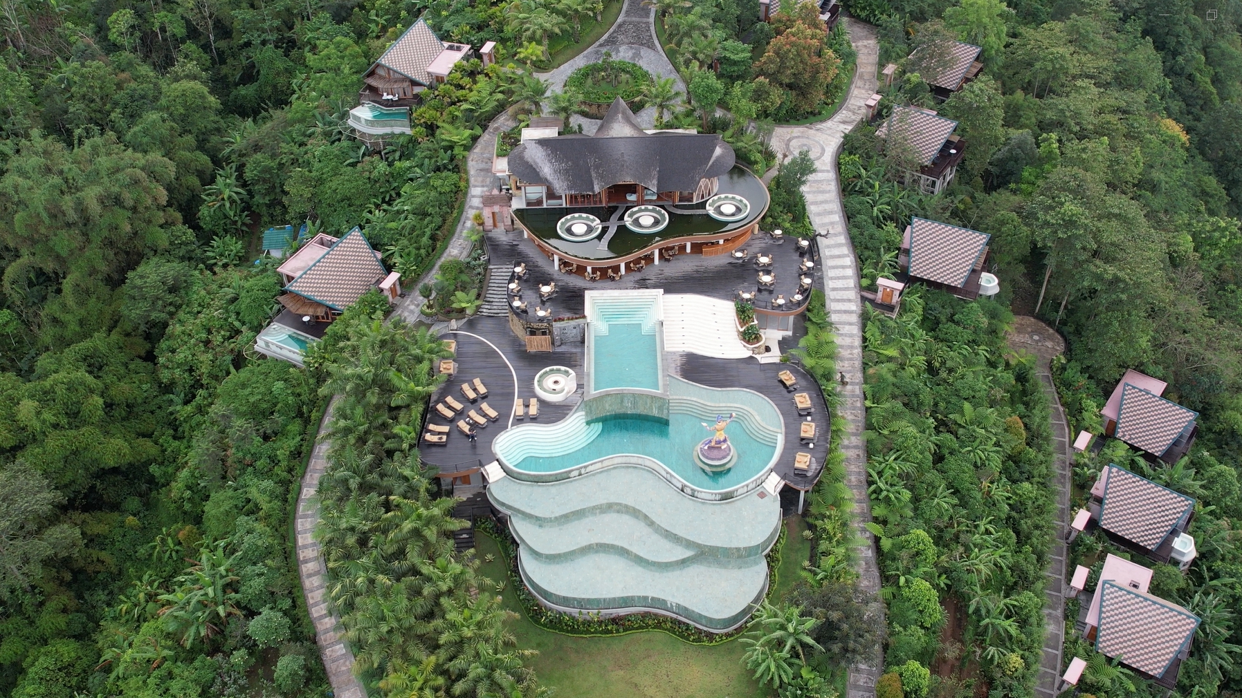 발리 문둑에 위치한 엘리베이트 리조트에 도착하자마자, 이곳이 단순한 리조트가 아니라는 것을 알 수 있다. 해발 1,200미터 고지대에 위치한 이 리조트는 열대 정글의 한가운데 자리 잡고 있어 자연의 웅장함과 고급스러움을 동시에 느낄 수 있다. 리조트 로비에서부터 느껴지는 세련된 인테리어와 환대는 여행자의 기대를 충족시키기에 충분하다.